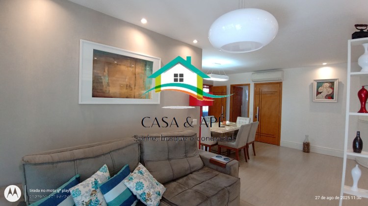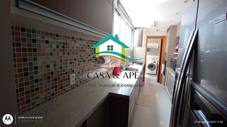 Excelente apartamento! Modernizado, hidráulica e elétrica refeitas, marcenaria Adams, acabamento de ótima qualidade. Piso em laminado de madeira, teto rabaixado com iluminação de led direta e indireta, portas em madeira maciça e câmeras. Composto de hall privativo, sala ampla em 2 ambientes, varandão, circulação, 3 quartos sendo 2 suítes (uma master). Banheiros da suíte e social amplos, em porcelanato, com boxes blindex, detalhes em pastilhas e armários sob as bancadas das pias. Cozinha planejada com backsplash em pastilhas, bancada e rodabanca em granito claro, coifa-depurador de ilha Tramontina, espaço para geladeira duplex, cooktop e torre quente. Lavanderia. Dependências completas tipo suíte, adaptável como quarto de hóspedes. Documentação perfeita para financiamento. Duas vagas na escritura, livres.