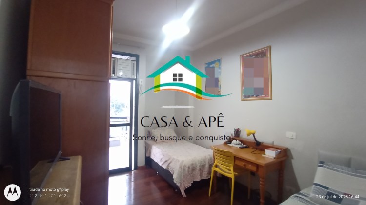 Excelente apartamento, sol da manhã, piso em tábuas corridas, partes frias em porcelanato e varandão tomando a sala e os quartos. Composto de sala 2 ambientes, 2 quartos sendo 1 suíte, banheiros da suíte e social com box blindex; cozinha planejada, lavanderia separada, quarto de serviço amplo, reversível para terceiro quarto social, e banheiro de serviço. Vaga na escritura. Aceita financiamento e FGTS.